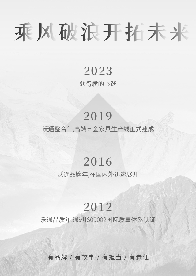 沃通五金將積極弘揚(yáng)中國(guó)家具文化,綜合國(guó)際家具潮流,運(yùn)用無限的創(chuàng)意,設(shè)計(jì)生產(chǎn)出大量造型美觀,引領(lǐng)時(shí)代潮流的新產(chǎn)品。